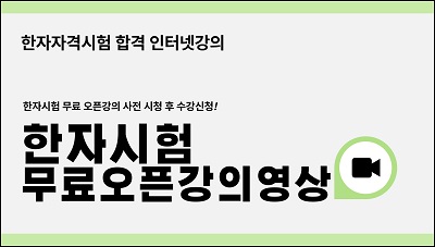 한자시험 주관처별 한자강의와 교재를 서비스 하고 있습니다. 무료가입 후 한자강의 수강하시고, 강의교재는 별도 PDF교재를 구매하여 바로 다운받아서 배정한자 강의와 함께 공부하시면 됩니다.